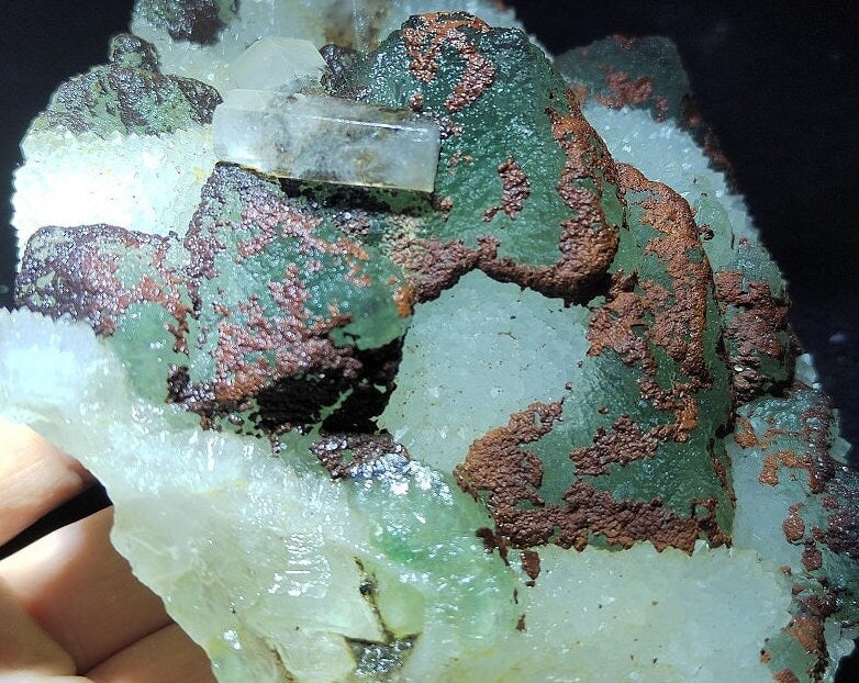 Natural Columnar Aurora Calcite Stepped Green Fluorite Crystal Cluster